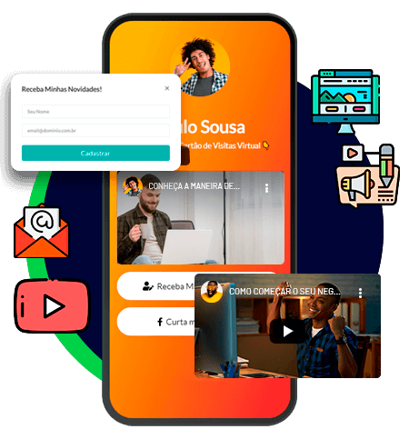 Você também pode usar Vídeos e Formulários em seus Cartões para transformá-los em verdadeiras ferramentas de prospecção na internet.